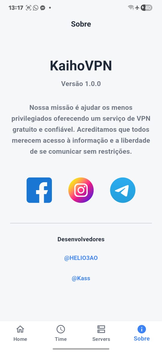 Somos um grupo de jovens programadores, que têm o objectivo de ajudar na privacidade e acesso em seus usuários, com a melhor VPN que existe.